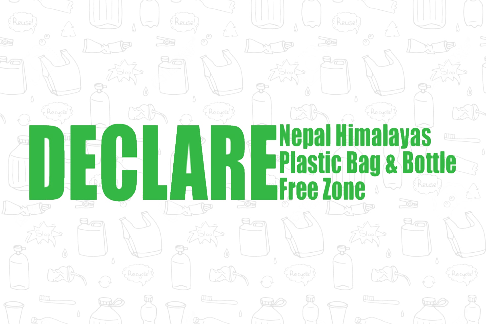 Declare Nepal Himalayas Plastic Bag & bottle Free Zone A campaign to ban plastic bags and plastic mineral water bottles in all National Parks and trekking areas of Nepal.